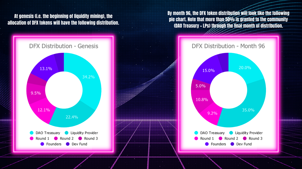 如前所述，DFX 是协议的治理代币，但也充当奖励代币以激励流动性提供者。这是代币经济学的崩溃。