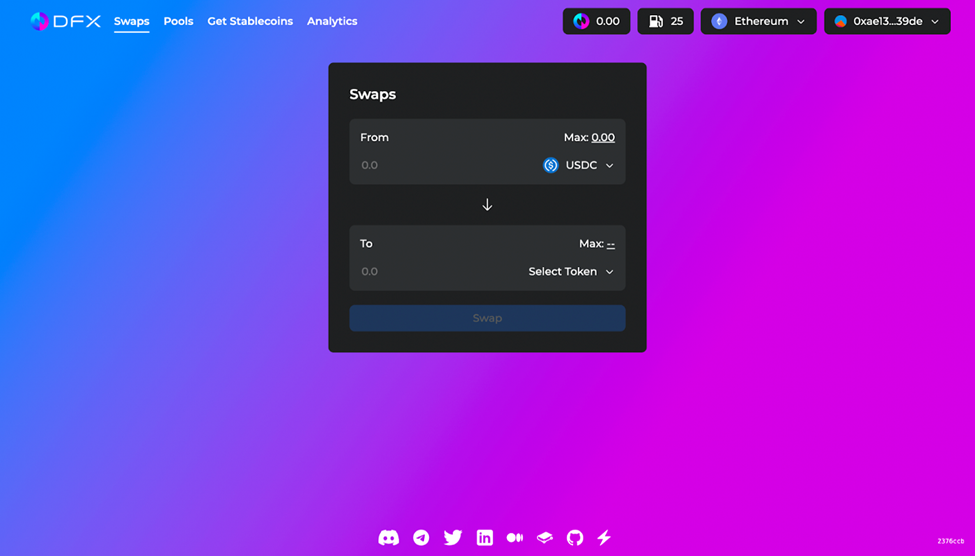 * **DFX AMM**：在以太坊和多边形上交换多个法币稳定币