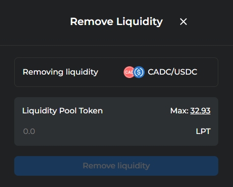 Now that I have found the liquidity pool I want to provide to (CADC/USDC) and how I want to deposit (single sided or two sided), I can now input my desired amount and click “Add liquidity”.